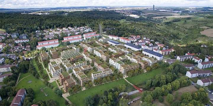 Falls dem Bund solche Ideen zu heikel sind, sollten solche Optionen zumindest auf kommunaler Ebene geöffnet werden. Ein Beispiel wäre das Ulmer Modell, das Wege zu einer spekulationsfreien Baulandausweisung aufzeigt. Zahlreiche Bauten hat das Ulmer Modell bereits ermöglicht. Unser Beipiel zeigt das neue Quartier Am Weinberg. 900 Wohnungen entstehen hier, 30 Prozent davon mit geförderten Mieten.