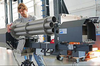 Auf der Website des IFT wird das Testprocedere der Hagelprüfung gut beschrieben. Die Hagelkanone sieht etwas anders aus als die vom BVS in Linz, testet aber nach den gleichen Kriterien.