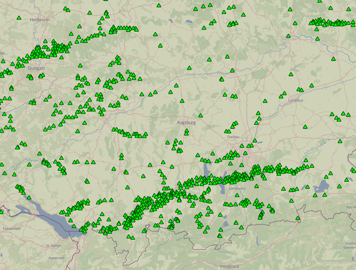 Grafik Süddeutschland: Von Heilbronn über Augsburg bis Innsbruck