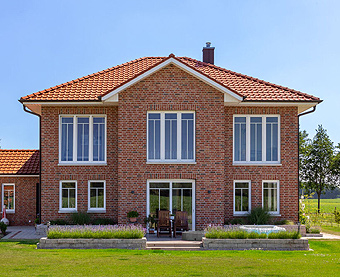 Der abgerundete Kirchen-Biberschwanz eignet sich dabei nicht nur für Kirchendächer. Im ländlichen Raum ist dieses Ziegelmodell durchaus beliebt. Der etwas profanere Handschlagbiber (ohne Rundung) konnte sogar Eiskugeln mit 60 mm Durchmesser widerstehen (also: HW 5+). Für viele Haustypen dürfte dagegen das universellerer HW 5-Modell E 58 Plus in Frage kommen, es ist quasi ein Allrounder. Auch die Erlus AG bietet auf der Website viele Bildbeispiele mit Einzel- und Flächenbildern. Unter „Referenzen“ findet man beim jeweiligen Ziegel zahlreiche Anwendungsbeipiele.
