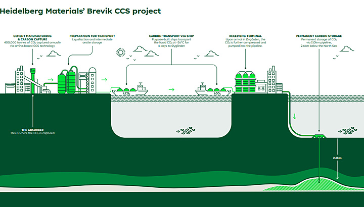 Das zentrale Vorzeigeprojekt ist das Zementwerk in Brevik (Norwegen), wo im Juni 2025 die weltweit erste Anlage dieser Art eröffnet wurde. So werden am Standort Brevik werden jährlich ca. 400.000 Tonnen CO2 (etwa 50 % der Werksemissionen) mittels Aminwäsche aus den Abgasen gefiltert und vor Ort verflüssigt.